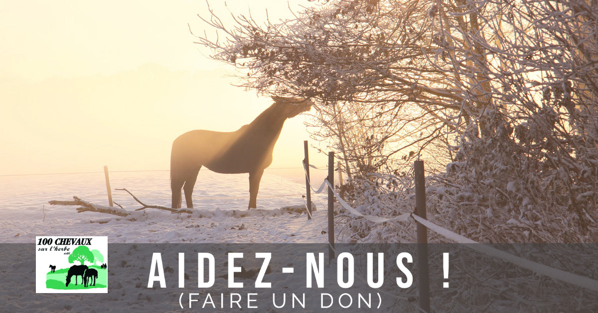 Les besoins pour le travail de 100 CHEVAUX SUR L'HERBE sont immenses , mais nos ressources sont extrêmement limitées (aucun subside, aucune aide permanente des pouvoirs publics) - ce qui signifie que nous devons faire preuve de dynamisme et de créativité pour assumer l'existence de notre refuge et ses 120 protégés ainsi que pour atteindre les objectifs que nous nous sommes fixés.